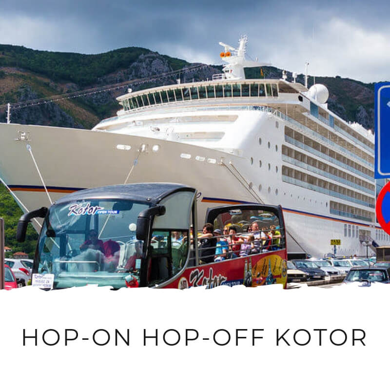 Kotor Open Tour is Kotor’s hop-on hop-off bus tour. It’s designed for cruise ship passengers and it only goes when there’s a ship in port. The tour visits Risan Roman Mosaics, Perast, Bajova Kula Beach and Kotor.