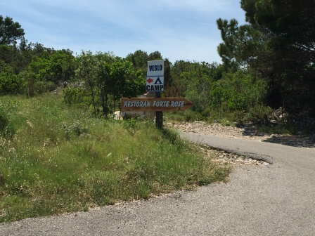 The turn off to Kamp BegovicYou'll want to bring snorkelling gear here and also watch out for sea urchins on the rocky bottom. It's not an ideal place for small children for that reason. Blue Horizons is a better spot for little kiddies.