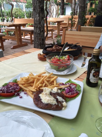 The Balkan grill is great – my favourite is the hamburger with kajmak- a type of Balkan cream cheese. This comes with a large helping of home fries and a side of onions. I like to get a side salad to go with it, just to lighten it up a bit.