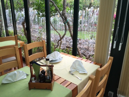 When you walk in the traffic is drowned out by the sound of the water fountains and the interior makes you feel like you’re sitting in a garden.