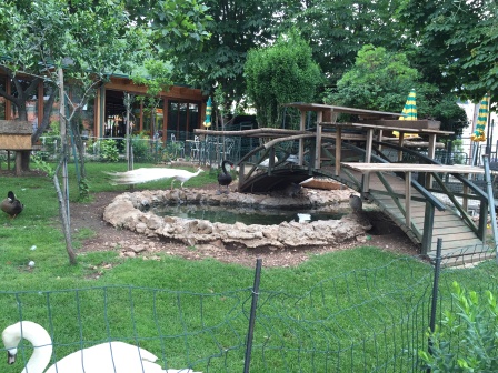 The thing that also surprises and delights at Merkur is the little animal garden. The garden has a wooden lookout that kids just adore and from up there you can see peacocks, peahens, ducks, rabbits, swans and tortoises all relaxing around the garden.